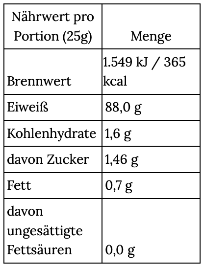 Rühren Sie 25 g Pulver (ca. 2 Esslöffel) in 250 ml Wasser oder Magermilch ein und trinken Sie je nach Bedarf 1 -3 Portionen täglich.
