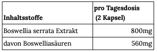 Boswellia serrata Extrakt (indischer Weihrauch), Hydroxypropylmethylcellulose.