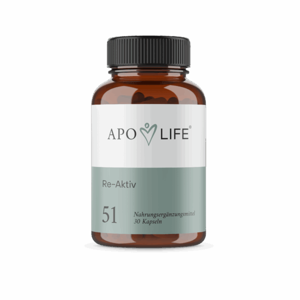 Apolife Nr. 51 Re-Aktiv kombiniert körpereigene Substanzen, die den Energiestoffwechsel und wichtige Zellfunktionen unterstützen.